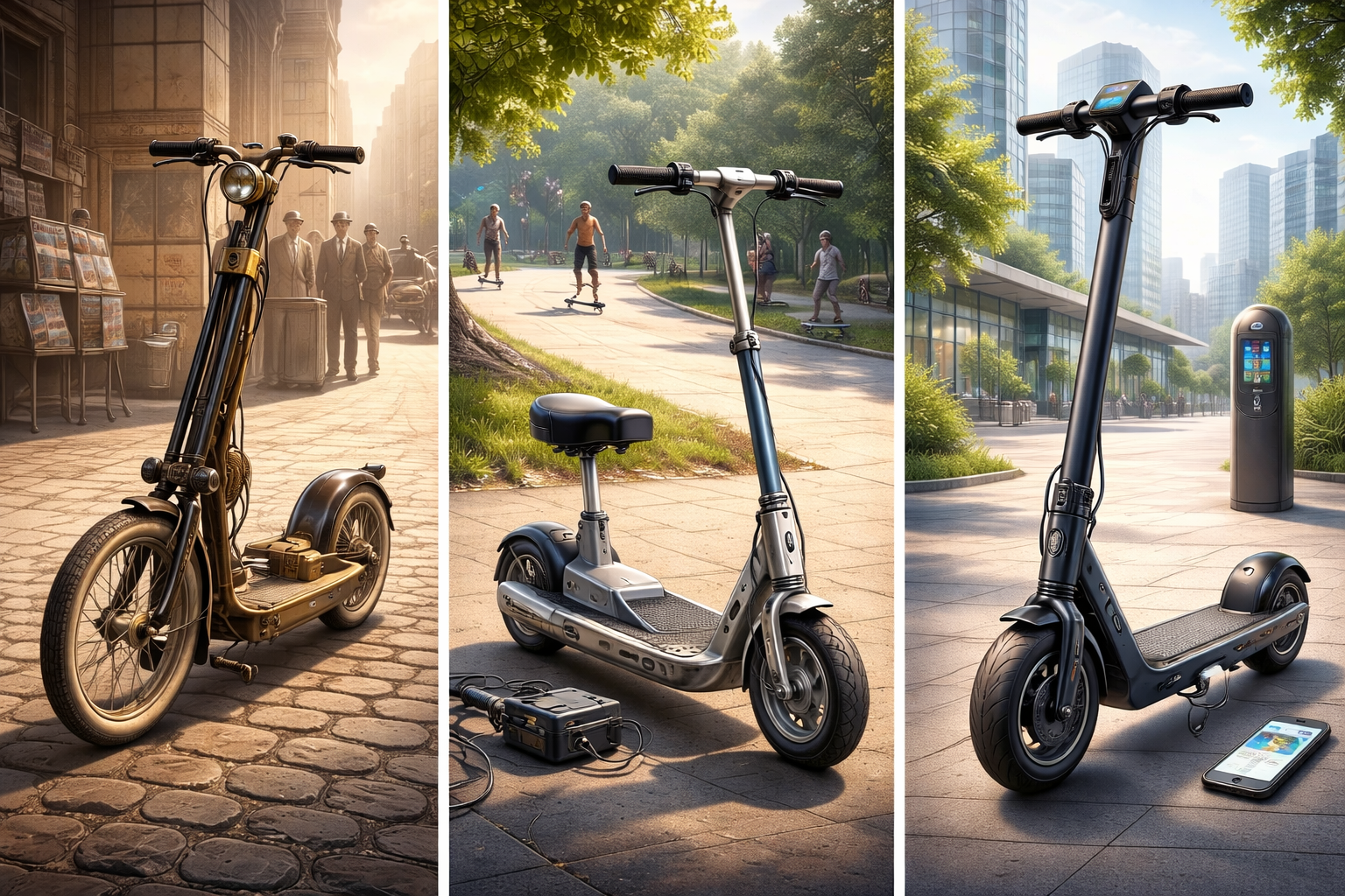 In den 1990er- und frühen 2000er-Jahren tauchten erste elektrische Tretroller auf, oft als Freizeitgeräte. Typisch waren: